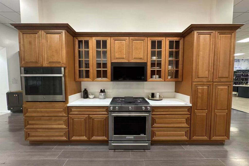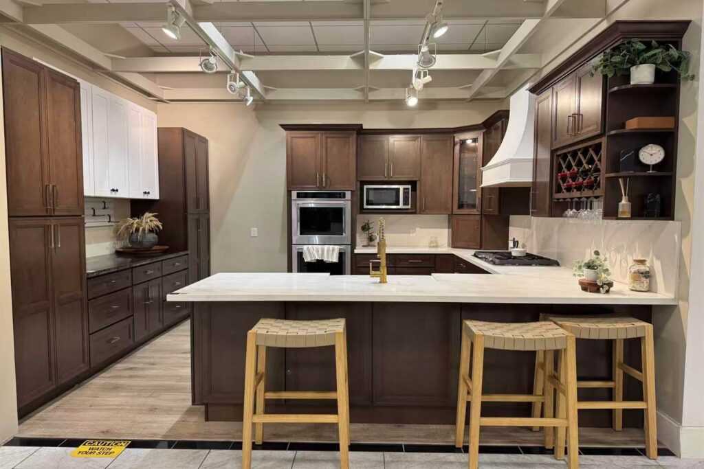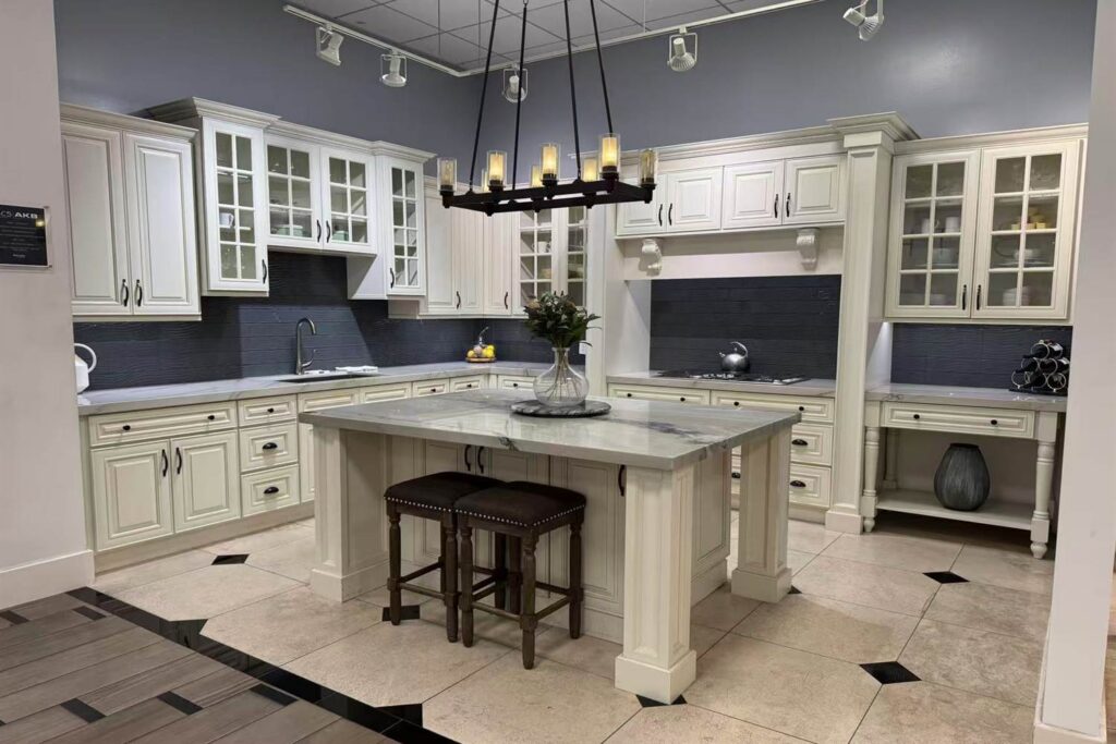2. Review the cabinet colors and styles in the showroom’s full kitchen displays.